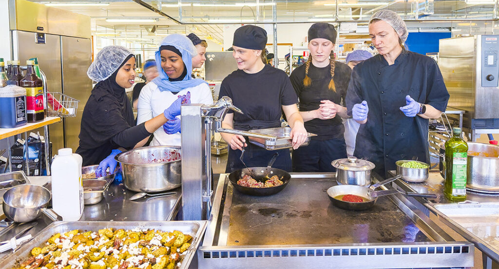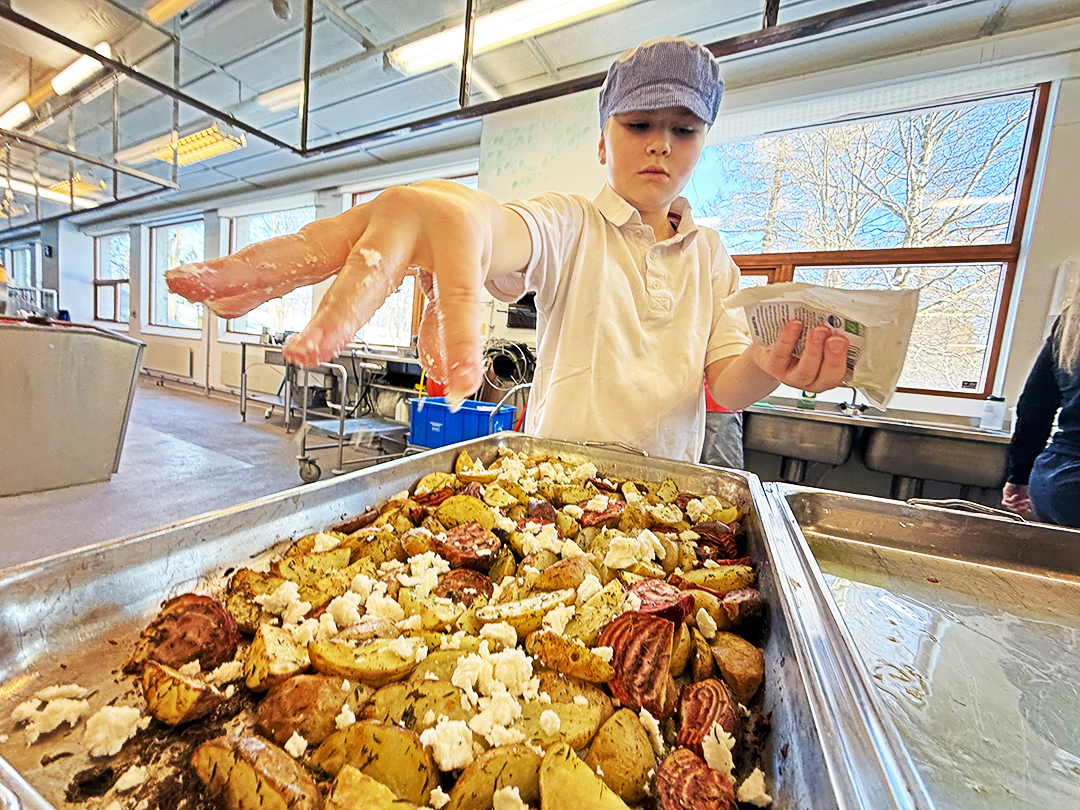 Det hackas, blandas, steks och läggs upp färgsprakande kreationer. Bland favoriterna finns olika typer av dippsåser, ugnsrostade rotfrukter samt rödbetsburgare. Vad som slutligen hamnar på skolmatsedeln återstår att se – men klart är att flera nya favoriter närmar sig.